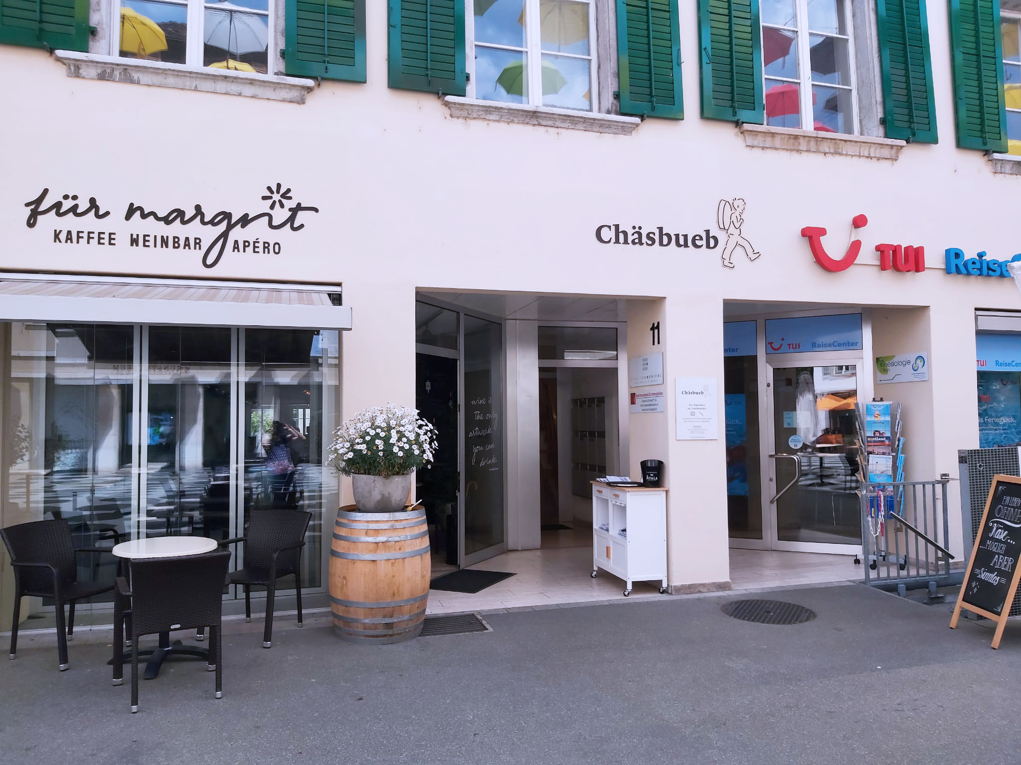 ebenerdige und rollstuhlgängige Zugang durch das Kaffee mit Weinbar «Für Margrit» nach